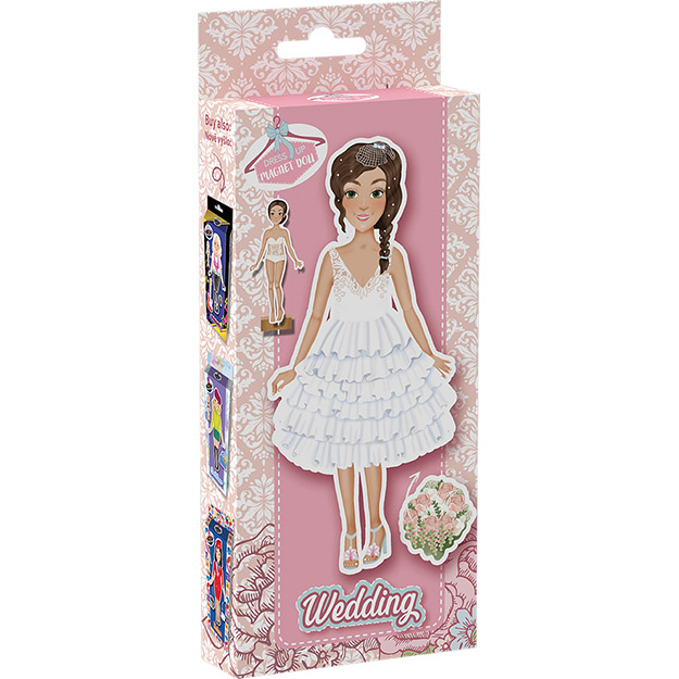 A szett egy öltöztetős figurát, 3 ív mágneses ruhadarabot, lábbelit és kiegészítőt, valamint egy fa alapot tartalmaz.